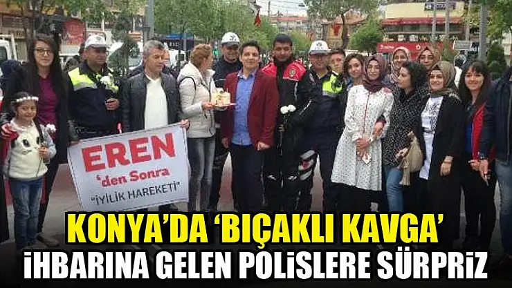KONYA'da 'bıçaklı kavga' ihbarı üzerine olay yerine giden polis, kavga yerine sürpriz bir kutlamayla karşılaştı.