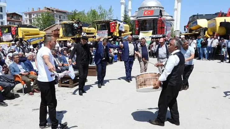 Hasat mevsimine hazırlanan ve Türk bayraklarıyla süslenen onlarca biçerdöver, konvoy eşliğinde korna çalarak Yerköy Tren İstasyonu'na geldi. Davul zurna eşliğinde karşılanan biçerdöver sahipleri, halay çekip çalışma sezonun başlamasını kutladı.
