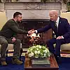 Biden, "Peki ne olacak? Bugün konuştuğumuz şey, Ukrayna'nın savaşta başarılı olması için yardım etmeye devam edeceğiz. Savaş sahasında bizim, Avrupalı müttefiklerimiz ve diğerlerinin yardımı ile başarılı olabilirler. Dolayısıyla Başkan Zelenskiy Ruslarla konuşmaya hazır olduğunda o zaman da başarılı olacak çünkü savaşı kazanmış olacak." ifadelerini kullandı.