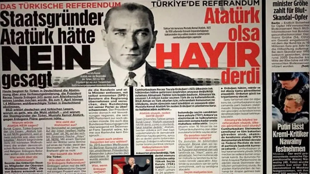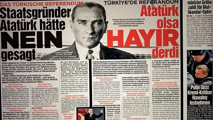 Alman Bild gazetesi, halk oylamasında oy kullanan vatandaşları etkilemek amacıyla 'Atatürk olsa hayır derdi' başlığını kullandı.