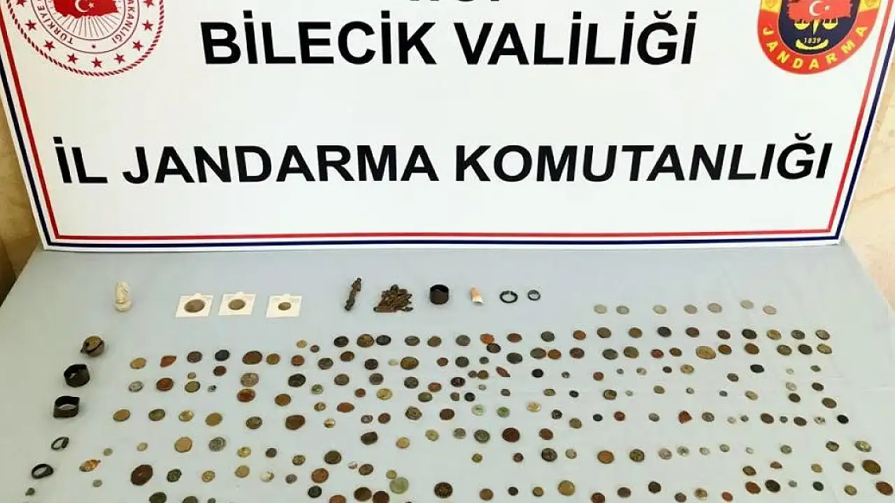 Bilecik'te jandarma ekipleri tarafından, ellerindeki tarihi eserleri satmak istediği belirlenen 4 şüpheli yakalanıp gözaltına alındı, yapılan aramada 262 sikke ele geçirildi.Bilecik Jandarma Komutanlığı ekipleri, R.B., O.Ç., S.Ş. ve H.E. isimli şüphelilerin elinde tarihi eser olduğu bilgisi üzerine harekete geçti. Takibe alınıp yakalanan şüphelilerin üzerlerinde ve çantalarında yapılan aramada 262 adet sikke ele geçirildi. Gözaltına alınan 4 şüpheli hakkında adli işlem başlatıldı. Ele geçirilen sikkeler, incelenmesi için Bilecik Müze Müdürlüğü'ne teslim edildi. (