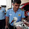 Edinilen bilgiye göre, merkez Mezitli ilçesi Devultepe Mahallesi’ndeki sulama göletinde bir leyleğin yaralı halde çırpındığını gören vatandaşlar, itfaiye ekiplerini arayarak yardım istedi. İhbar üzerine gölete giden Mersin Büyükşehir Belediyesi’ne bağlı itfaiye ekipleri, çamura batmış ve bitkin haldeki leyleği merdivenli araç yardımı ile bulunduğu yerden çıkararak Veteriner Daire Başkanlığı’na götürdü. Burada ilk müdahalesi yapılan leyleğin ateşli silahla vurulması sonucu sol bacağının kırık ve kopmak üzere olduğu belirlenirken, üzerinde bir takip cihazı takılı olduğu saptandı. Bakımı yapılmak üzere Tarsus Hayvanat Bahçesi’ne gönderilen leyleğin bir süre sonra öldüğü bildirildi.