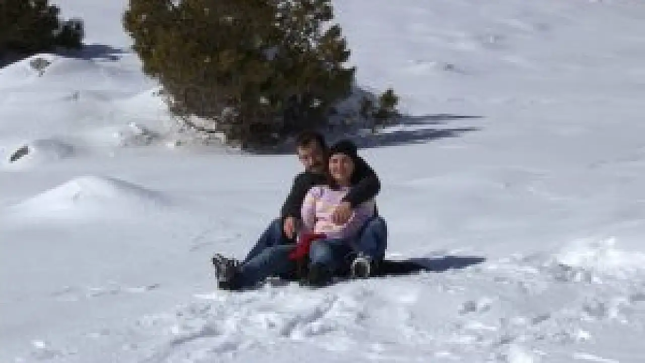 Seydişehir ilçesinde yoğun kar yağışı sonrası Antalya ve içlerinde yaşayanlar havaların açılmasıyla birlikte bin 825 rakımlı Alacabel'de kar keyfi yaptı.