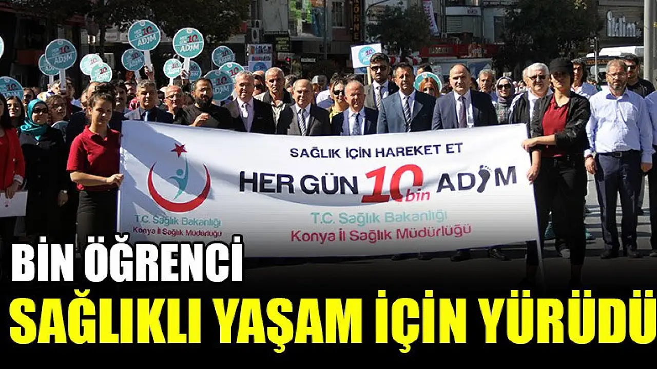 3-4 Ekim Dünya Yürüyüş Günü Etkinlikleri kapsamında Konya İl Sağlık Müdürlüğü tarafından organize edilen 'Her gün 10 bin adım' yürüyüş etkinliğine ilkokul, ortaokul ve lise öğrencilerinden olmak üzere toplam bin öğrenci katıldı.