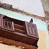 Bina duvarında asılı kalan dolap, ilgi odağı oldu