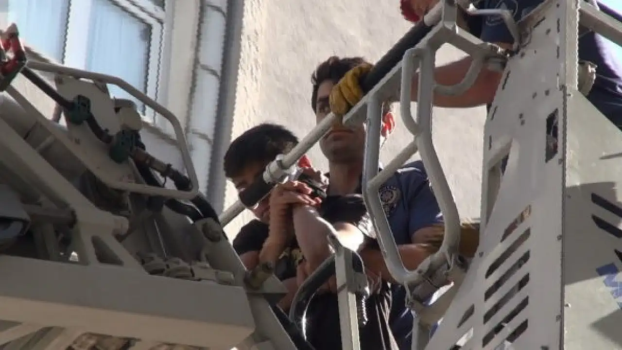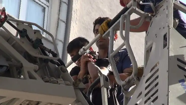 Olay, dün saat 17.00 sıralarında 50. Yıl Mahallesi Muhsin Yazıcıoğlu Caddesi'nde meydana geldi. Süpermarketin şubesine gelen üç çocuk, hırsızlık girişiminde bulundu. Çalışanların fark etmesiyle marketten kaçan çocuklardan ikisi izini kaybettirirken, biri binaya tırmanarak duvardaki çıkıntıya çıktı. Haber verilmesi üzerine olay yerine polis ekipleri sevk edildi. Ekiplerin, tüm ısrarlarına rağmen D.Ş., (13) adlı çocuk bulunduğu yerden inmedi. Bunun üzerine ekipler, itfaiyeden yardım istedi. İtfaiye ekipleri, çocuğun atlama olasılığına karşı hava yastığı açtı. Çevrede bulunanlar ise olan biteni meraklı gözlerle izledi. Bazılarının sosyal medya hesaplarından canlı yayın yaptığı görüldü. Bir polis memuru, itfaiyenin merdiven aracının sepetine binip, çocuğu bulunduğu yerden indirerek, sepete aldı. Küçük çocuk daha sonra polis merkezi Amirliğine götürüldü.