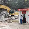 Bina yıkılırken tehlikeye aldırış etmeden para çektiler