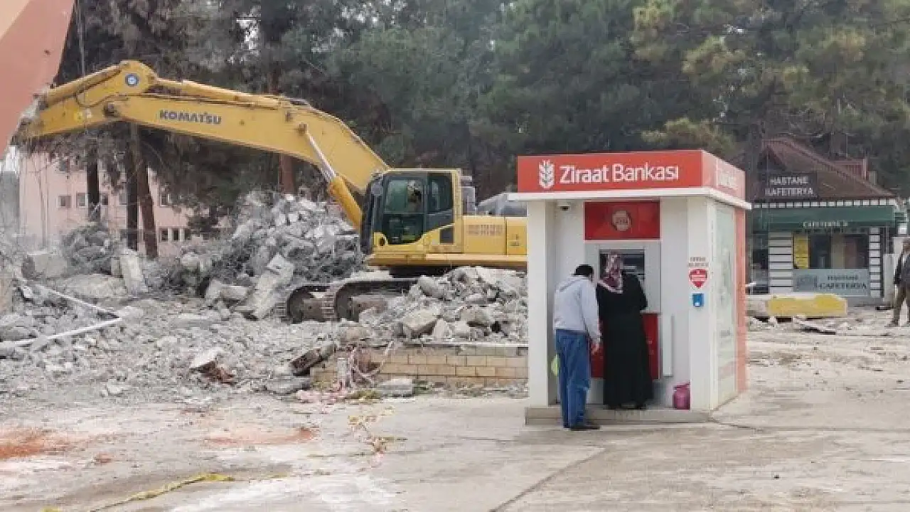 Tokat'ın Erbaa ilçesinde yıkım çalışmaları yapılan eski hastane binasının yakınındaki ATM'den para çekmeye devam eden vatandaşlar görenleri şaşırttı.