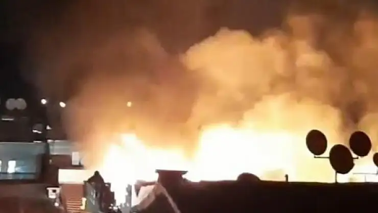 Binanın çatısı alev alev yandı