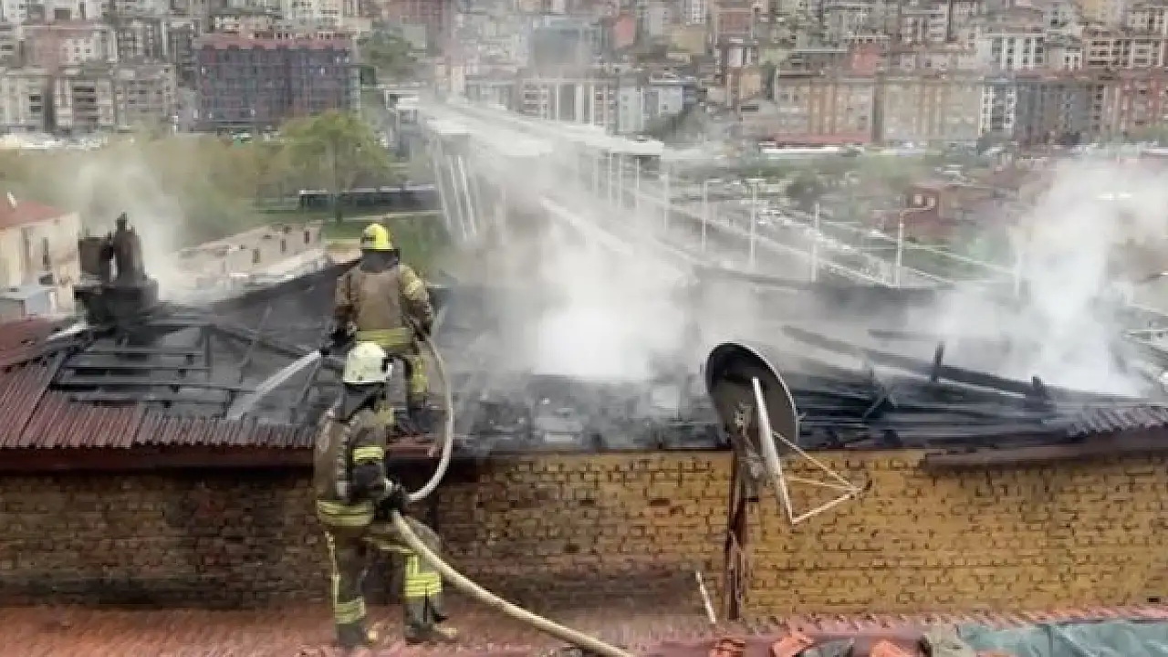 Binanın çatısı alev alev yandı