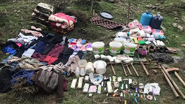 Muhtelif gıda ve yaşam malzemelerinin ele geçirildiği sığınak güvenlik güçlerince kullanılamaz hale getirildi.