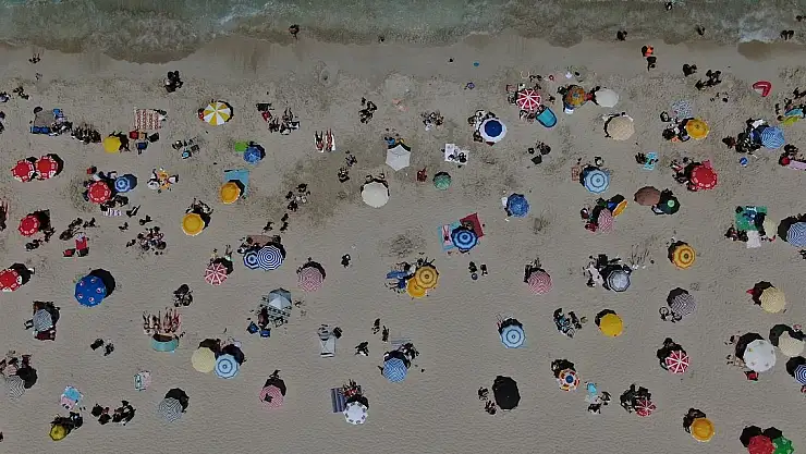 Öte yandan dünyaca ünlü Ilıca Plajı, tatilcilerin akınına uğradı. Plajda, iğne atılsa yere düşmeyecek bir kalabalık oluşurken, vatandaşlar bunaltıcı sıcakta kendini serin sulara bırakarak denizin ve tatilin keyfini çıkardı. Dolup taşan plajdaki yoğunluk ise havadan görüntülendi.