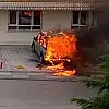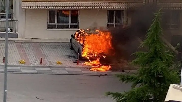 Bir anda yanmaya başlayan araç alev topuna döndü