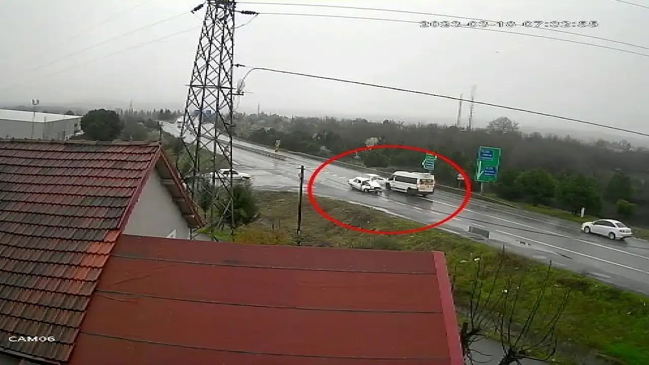 Öte yandan, 3 aracın karıştığı trafik kazası güvenlik kamerasına yansıdı. Görüntülerde, 81 ACP 115 plakalı Tofaş marka otomobilin kontrolsüz ana yola çıktığı esnada 54 AR 868 plakalı Tofaş marka otomobilin çarpması ve ardından kontrolden çıkan otomobilin minibüse çarpması yer alıyor.