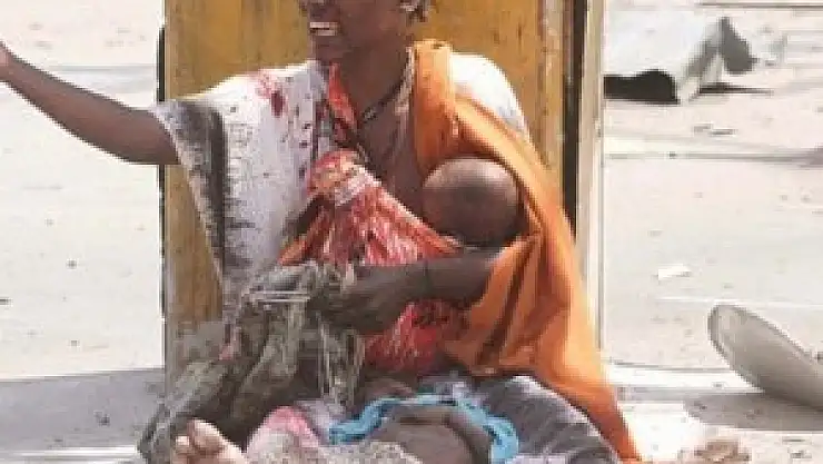 Somali'nin başkenti Mogadişu'da düzenlenen bombalı saldırıda 9 kişi hayatını kaybetti. Görgü tanıklardan alınan bilgiye göre, eski Mogadişu Belediye Başkanı sekreterinin aracına yerleştirilen bombanın infilak etmesi sonucu, kendisi ve olay yerinde bulunan 8 kişi hayatını kaybetti. Saldırıda çok sayıda kişi de yaralanırken, kucağında bebeği, ayak ucunda ise hayatını kaybeden çocuğunun cesedi ile bekleyen bu yaralı annenin feryadı yaşanan dehşetin boyutunu gözler önüne serdi.
