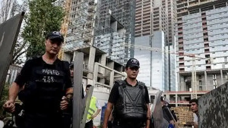 TOMA'ların da bulunduğu şantiye önünde polis geniş güvenlik önlemi alıyor.