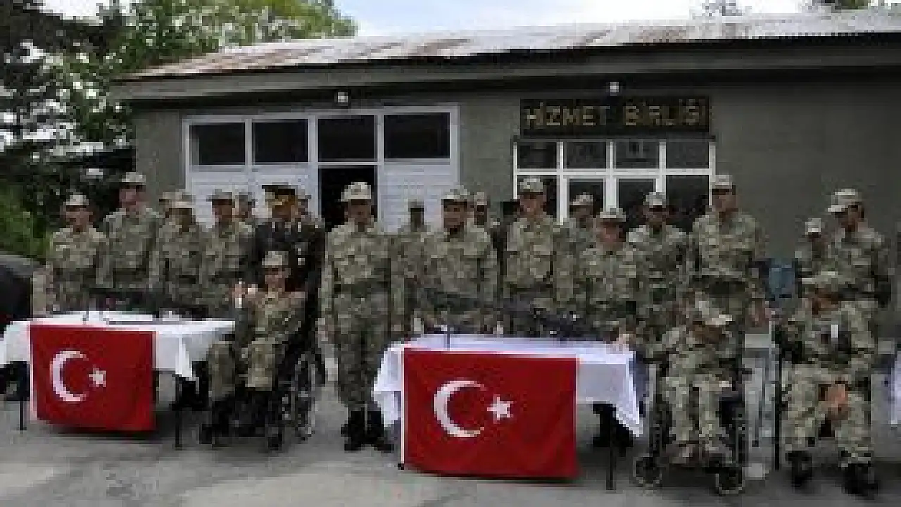 Yapılan konuşmanın ardından yemin eden 20 engelli gence protokol üyeleri tarafından terhis belgeleri verildi. Terhis belgeleri verilmesi sırasında aşırı heyecan yüzünden engelli bir genç kısa bir süre fenalık geçirerek bayıldı. Bayılan gence sağlık görevlileri hemen müdahale etti. Terhis belgeleri verilirken törene katılan ailelerin gözyaşlarına hakim olamadığı gözlendi. Törende daha sonra kışla bahçesindeki silah sergisi gezilerek aileler ve özürlü askerler silahlarla fotoğraf çektirdi. Tören yemek programı ile son buldu.