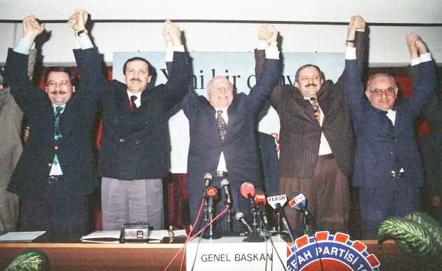 7 Haziran 1996′da Cumhurbaşkanı Süleyman Demirel 54. Cumhuriyet Hükümetini kurma görevini Refah Lideri Prof. Dr. Necmettin Erbakan’a verdi. Erbakan 54. Hükümeti kurma çalışmalarına büyük bir anlayış, nezaket ve yumuşak tavırla başladı. Erbakan başbakanlığında kurulan Refahyol hükümetiyle önceki hükümetler arasında bir mukayese yapıldığında, Refahyol Hükümeti’nin özellikle ekonomi alanında diğer hükümetlere göre daha başarılı olduğunu söylemek mümkün. Refahyol’un işbaşında olduğu bir yıllık sürenin sonunda, ortaya çıkan ekonomik göstergeler, bunu ortaya koyuyor. Tam bir yıl süren Erbakan’ın başbakanlığının ilk yarısı normal denecek şekilde geçti. Ancak ikinci yarısı yaygaralarla dopdolu bir şekilde geçti. 4 Şubat, 28 Şubat, 21 Mayıs derken, yaygaralar olayları körükledi, olaylar yaygaralara sebebiyet verdi. Ve arkasından dayatmalar, baskılar, zorbalıklar olduğu iddiası söz konusu oldu. Hoş olmayan gidişatı fark eden Başbakan Erbakan, ülkesi ve milletinin geleceği için Başbakanlık görevinden istifa etmeye karar verdi. Takvimler 17 Haziran’ı gösterdiğinde ise Başbakanlık görevinden, Başbakanlığın Çiller’e verilmesi için istifa etti. Yargıtay Cumhuriyet Başsavcısı Vural Savaş’ın RP’nin kapatılması istemiyle Anayasa Mahkemesi’nde açtığı dava, 7 ay 25 gün 53 saat süren karar oturumlarının ardından Anayasa Mahkemesi, RP’yi, “Laik Cumhuriyet karşıtı söylemleri tespit edildiği” gerekçesiyle kapattı. Erbakan, kararı büyük bir soğukkanlılıkla karşıladı ve halkı sükun ve teenniye çağırdı. Bu davranış, herhangi bir olayın meydana gelmemesine sebep oldu.