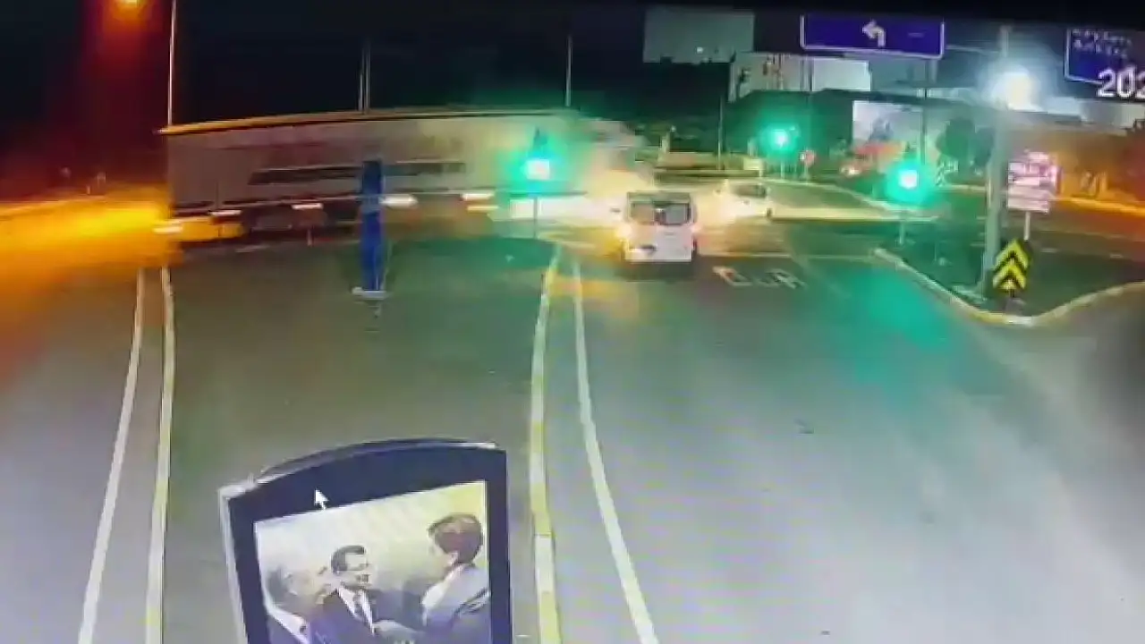 Bu arada kazanın güvenlik kamerası görüntüleri ortaya çıktı. Görüntülerde yeşil ışık yanınca hareket eden hafif ticari araca TIR'ın çarptığı yer aldı. Kayıtta, çarpmanın etkisiyle TIR'ın hafif ticari aracı yaklaşık 30 metre sürüklediği, ardından da devrildiği görülüyor.