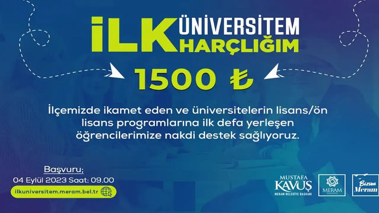 Meram Belediyesi, lisans ve önlisans bölümlerine ilk kez yerleşecek gençlere bin 500 TL nakdi destek yardımında bulunacak.