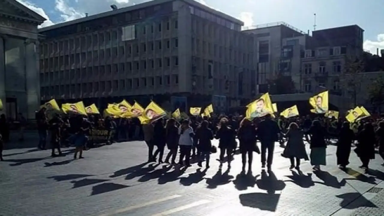 Bir grup terör örgütü PKK sempatizanı, Brüksel'in merkezinde toplanarak, terör örgütü elebaşı Abdullah Öcalan için eylem gerçekleştirdi.