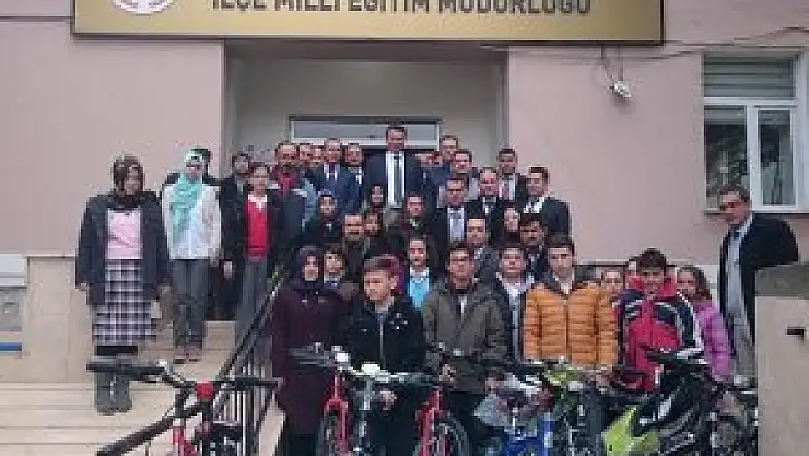 Konya'nın Beyşehir ilçesinde, yapılan deneme sınavında okullarında birinci gelen öğrenciler bisikletle ödüllendirildi.