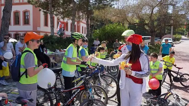 Belediye bahçesinde sürüş tekniklerinin anlatıldığı etkinlikte bisikletli çocuklara hazırlanan hediyeler verildi.