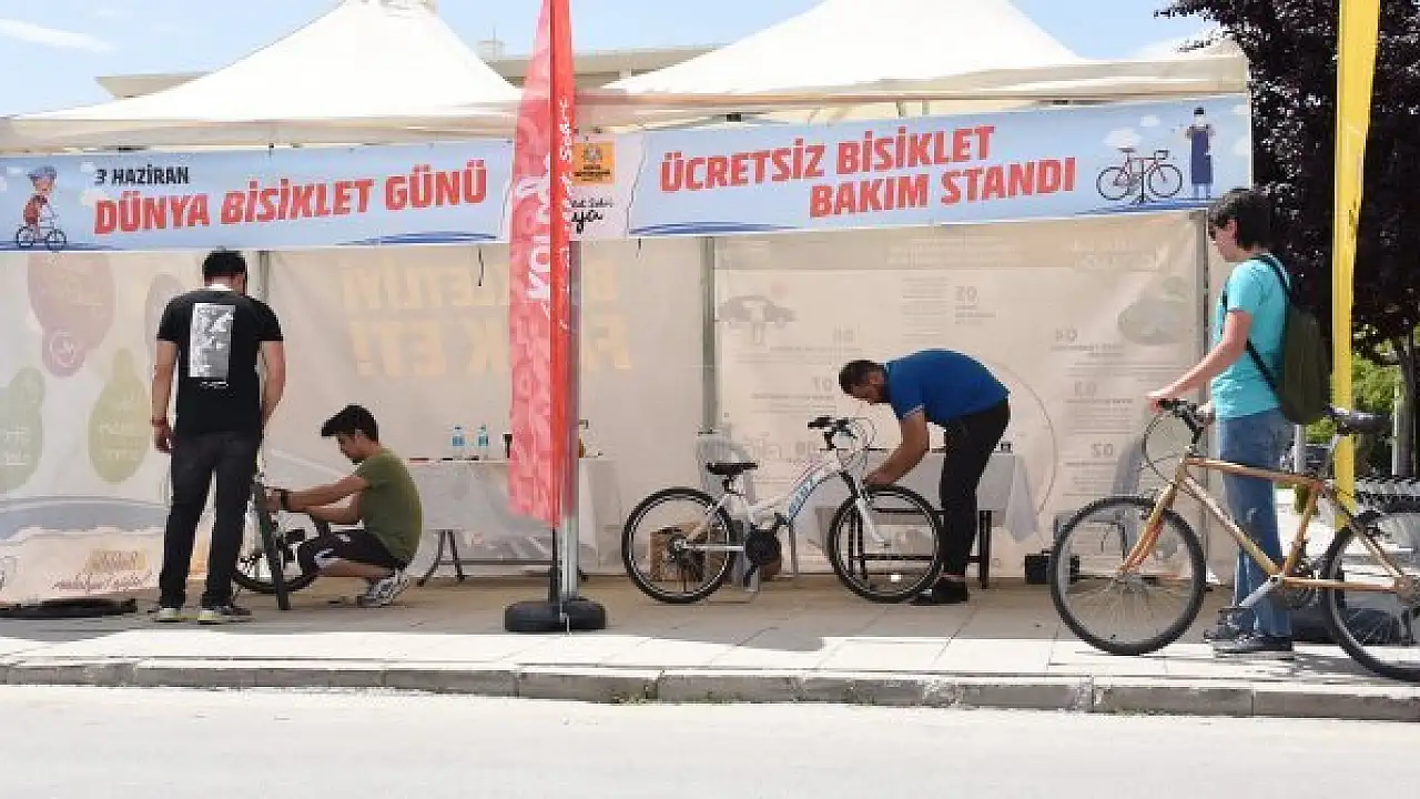 Konya Büyükşehir Belediyesi'nin Dünya Bisiklet Günü etkinlikleri kapsamında şehrin farklı noktalarında kurduğu bisiklet bakım ve tamir çadırları 10 Haziran akşamına kadar bisiklet kullanıcılarına ücretsiz hizmet vermeye devam edecek.