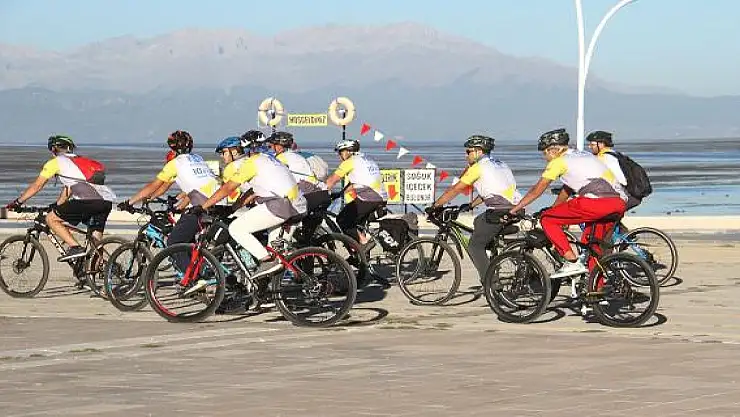 Bisiklet tutkunları Beyşehir Gölü etrafında 165 kilometre pedal çevirdi