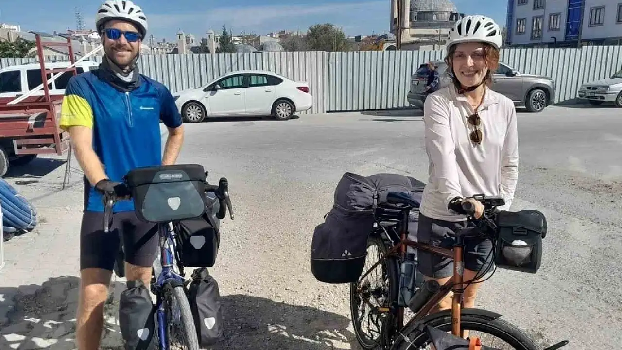 Almanya'dan 25 Haziran'da bisikletleriyle yola çıkan 10 ülkeyi geçerek Türkiye'ye gelen Alman çift, Konya'nın Karapınar ilçesinde mola verdi.