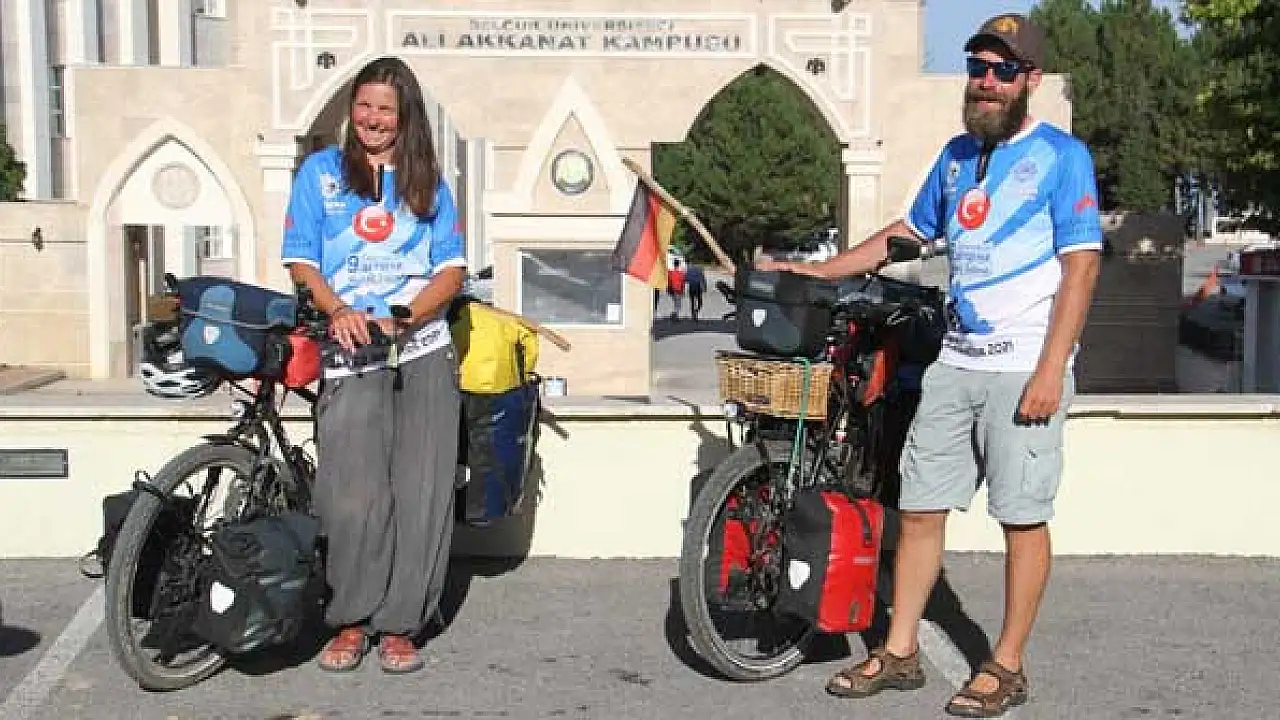 Bisikletle Asya turuna çıkan Alman sağlıkçı çift, Konya'da mola verdi