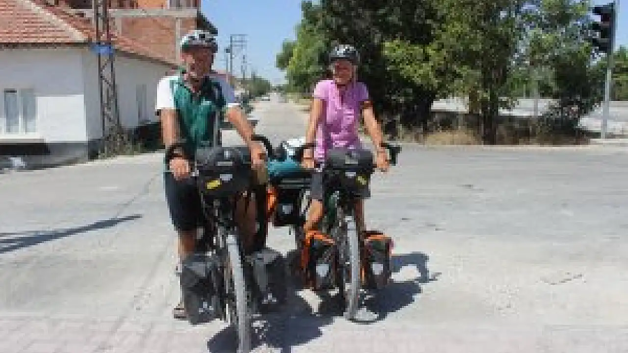 Bisikletle dünya turuna çıkan Alman çift, Karapınar'da mola verdi.