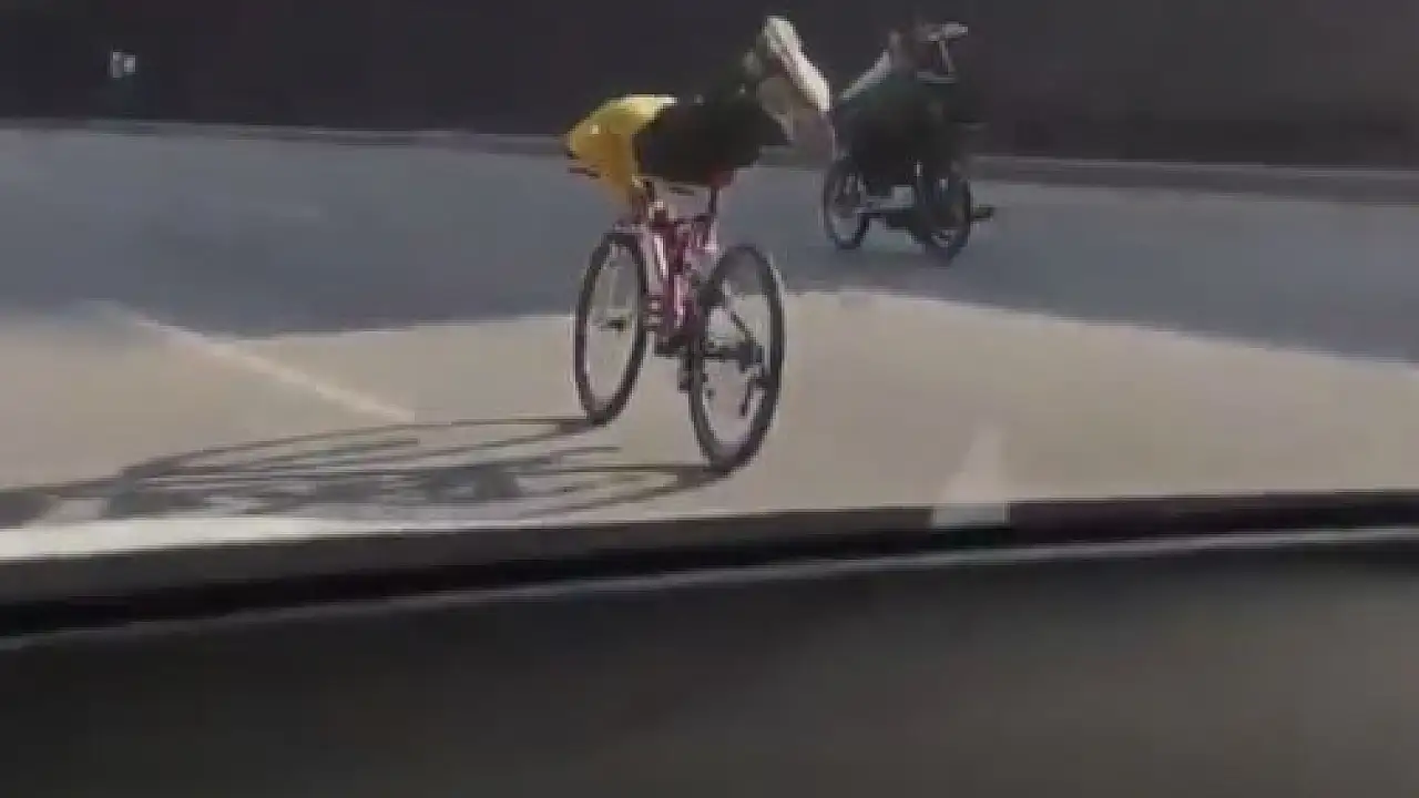 Gaziantep'te bir grup bisikletli gencin, trafik yoğunluğuyla bilinen tarihi İpekyolu'nda bisiklet koltuğuna uzanarak araçlar arasında yaptığı tehlikeli yolcuk bu kadar olmaz dedirtti. Bisikletli gençlerin, yoğun trafikte hızlı ilerleyen araçlara aldırmadan bisiklet koltuğuna yatarak araçların sağından solundan geçmeye çalışmaları dikkat çekti.