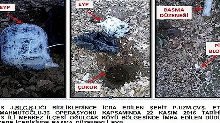 Operasyon bölgesinde dün arazi taraması sırasında bir düdüklü tencerenin içinde basma düzenekli el yapımı patlayıcı tespit edildiği duyurulan açıklamada, cumhuriyet savcısının talimatıyla patlayıcının güvenlik önlemleri alınarak yerinde imha edildiği vurgulandı.