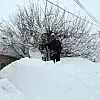 Bitlis'te yoğun yağış nedeniyle tek katlı evler kar altında kaldı. Vatandaşlar, evlerinin önündeki karları küreklerle temizlemeye çalıştı.