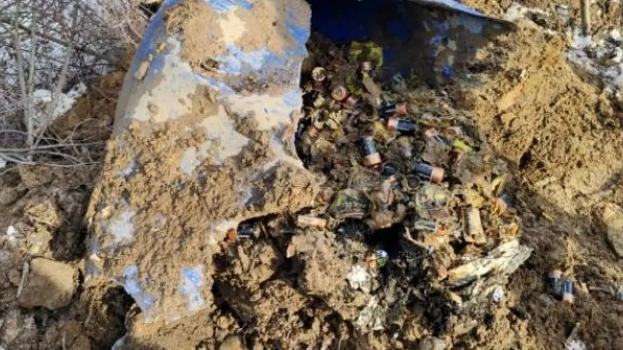 Bitlis'te teröristlerin toprağa gömdüğü 450 pil bulundu