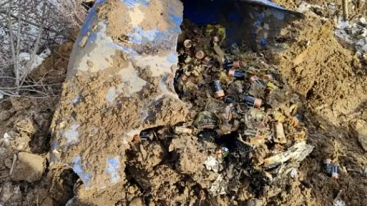 Operasyonda, Çobansuyu köyü kırsalında toprağa gömülü bidonda 450 büyük pil ele geçirildi.