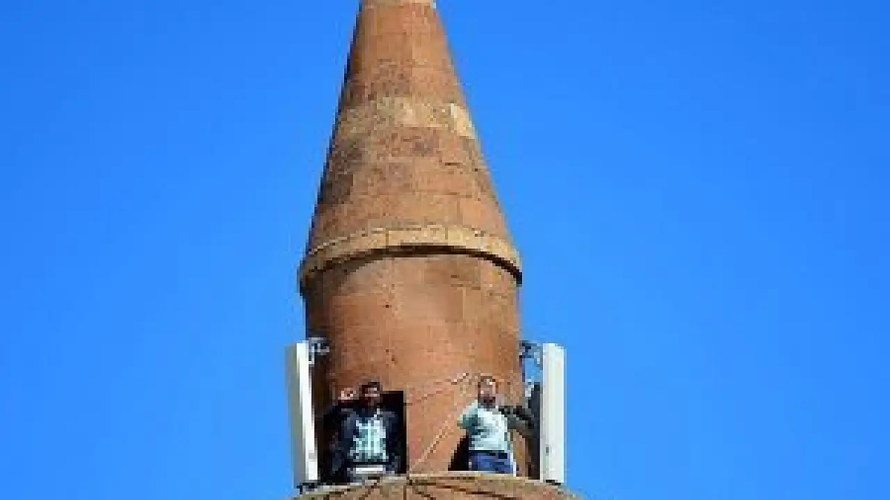 Baz istasyonundan kaynaklı şebeke sıkıntısı yaşanan köyde, telefonla konuşmak için minareye çıkanlar, artık köylüler tarafından yadırganmıyor.