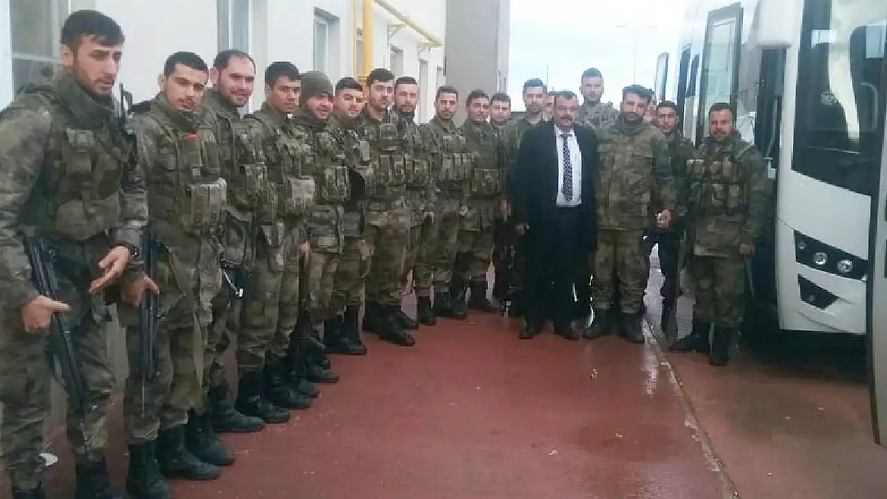 Konya'nın Karatay İlçesi Yediler Mahallesi Muhtarı Hasan Hüseyin Karahan Mehmetçiğe destek için Kilis sınır kapısında görev yapan asker ve polisleri ziyaret etti.