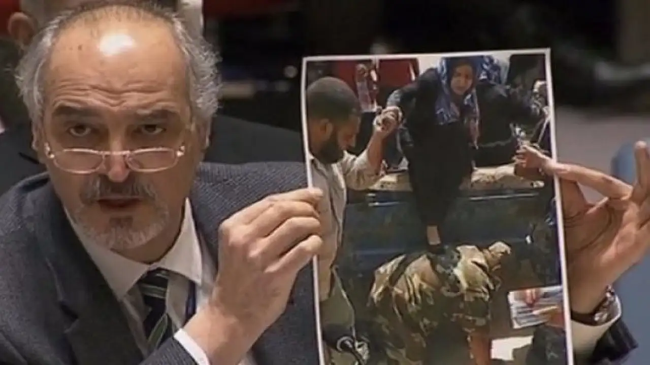 Esed rejiminin BM Temsilcisi Caferi, Halep'teki katliamı perdelemek için aylar önce Irak'ın Felluce kentinde çekilen yardım fotoğraflarını Suriye'de çekilmiş gibi gösterdi.