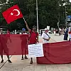İsviçre'deki Türk toplumu mensuplarının ellerinde Türk bayrağıyla destek verdiği gösteriye, İsviçreli Müslümanlar da iştirak etti.