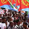 Etiyopya'nın başkenti Addis Ababa'daki Afrika Birliği Genel Merkezi önünde toplanan göstericiler, BM İnsan Hakları Araştırma Komisyonunun Eritre hükümetini, son 25 yıldır kölelik, tecavüz ve işkence dahil olmak üzere insanlığa karşı suç işlemekle itham ettiği raporuna destek verdi.