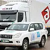 Birleşmiş Milletlerin gönderdiği yardım malzemelerini taşıyan 15 tır, Hatay'ın Reyhanlı ilçesindeki Cilvegözü Sınır Kapısı'ndan Suriye'ye geçti.