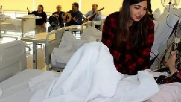 Yalova Üniversitesi Sosyal Hizmetler Bölümü 4. Sınıf öğrencileri adına konuşan Hesna Keser'de uygulama hakkında bilgi vererek, "Hayata 1 saat mola ver adlı proje kapsamında haftada 3 gün 4'er saat diyalize giren böbrek hastalarını morallerini düzeltmek adına ziyaret edip sohbet ediyoruz. Burada düzenlenen müzik etkinliği de hastaların sağlık değerlerinde olumlu yansımalara neden oluyor. Bu kapsamda Yalova Musiki Derneği ile ortaklaşa buradaki hastaların daha iyi vakit geçirmesi için buraya geliyoruz. Hem onlar mutlu oluyor hem de biz onlara destek olmaktan mutlu oluyoruz" dedi.