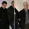 Terörle Mücadele Şube Müdürlüğü ekiplerinin nezaretindeki iki eski emniyet mensubunun ellerinin arkadan kelepçeli olduğu görüldü.