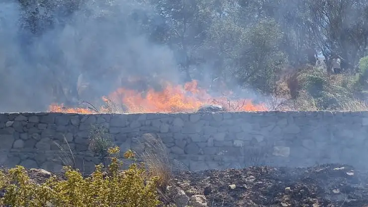 MUĞLA'nın Bodrum ilçesinde, otluk ve ağaçlık alanda çıkan yangın bölgedeki bir konteyner eve sıçradı. Alevler itfaiye ve orman ekiplerinin yanı sıra vatandaşların desteğiyle söndülürken, 1 dönüm otluk alan küle döndü.