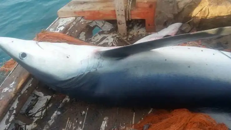 Bodrum'da balıkçıların ağına köpek balığı takıldı