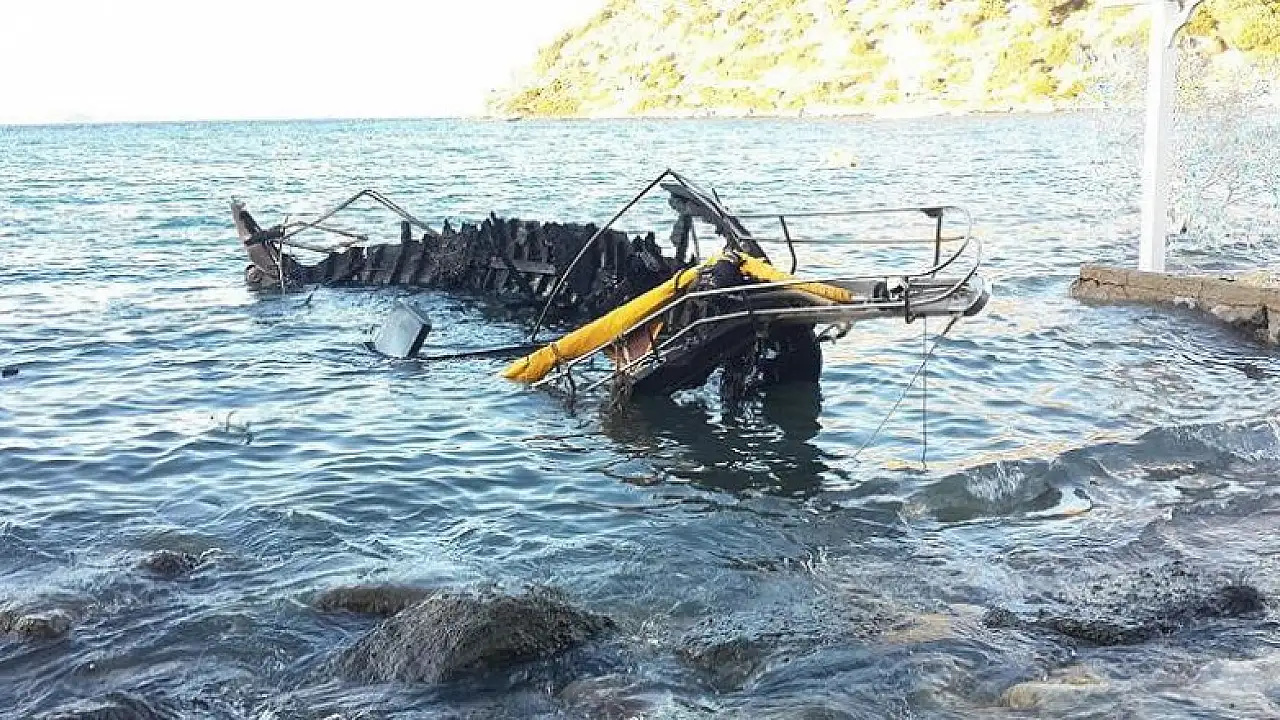 Kısa sürede alevlerin sardığı tekne, yandıktan sonra battı.