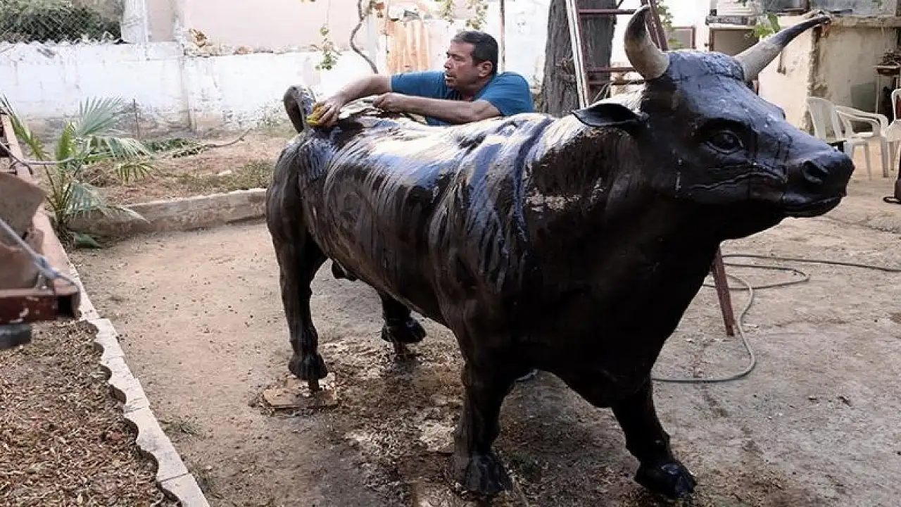 Hatay'ın İskenderun ilçesinde yaşayan seramik ve heykel ustası Selahattin Deniz, sipariş üzerine yapıp tamamladığını iddia ettiği 180 kilogram ağırlığında 2,5 metre boyundaki boğa heykeli müşteri tarafından teslim alınmayınca konuyu yargıya taşıdı.