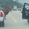 Boğa, sürücülere zor anlar yaşattı
